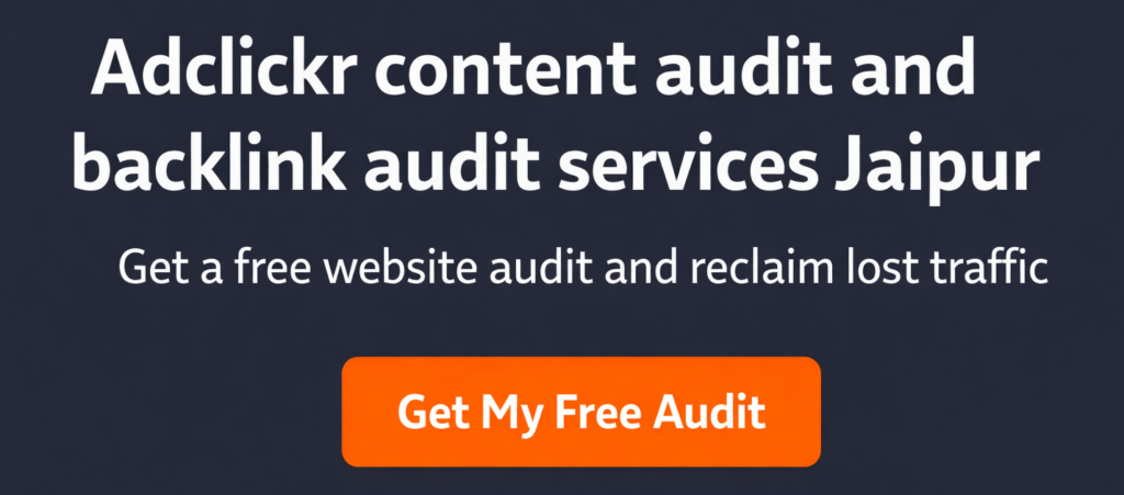 Consequently, the sites that grow consistently are not the ones publishing the most new content. At Adclickr, we run complete content audits and backlink audits as part of every SEO services in Jaipur engagement. Start with a free report to see exactly which pages are costing you traffic right now.